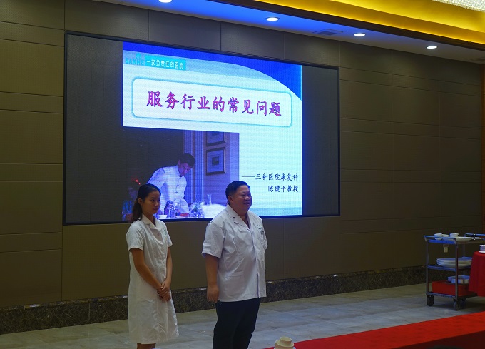 8月23日下午,裕華集團邀請三和醫院康復科陳健平教授,到酒店現場為各成員公司員工,講解服務行業的常見勞損健康問題。