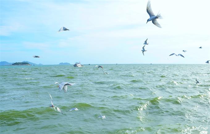 辦好入住,大家便乘船出海游玩。一望無際的海平面,起伏跌宕的海浪,讓大家領略到獨特的海上魅力。拖網打漁起網時,海鷗興奮地來回穿梭,猶如在海上開起了狂歡派對。
