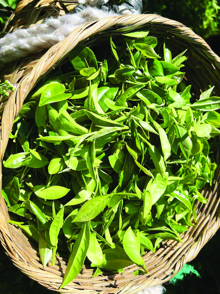 經過一整個冬天的休眠和養分積累,茶葉里的有機物質十分充足,加之春季溫度適中,雨量充分,使得春季茶芽肥碩。10多名茶農提著茶簍,在茶田間雙手翻飛采摘嫩綠的葉尖。時下正值蝴蝶紛飛的季節,絢麗的蝴蝶在一旁“伴舞”,宛如一幅優美的生態風光畫卷。