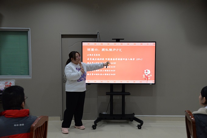第(di)一環(huan)節是(shi)在集團員(yuan)工活動(dong)室(shi)進行(xing)分(fen)(fen)組(zu)。由(you)總策劃人(ren)(ren)(ren)講解本輪活動(dong)設置的項(xiang)目(mu)、各項(xiang)目(mu)的規則和分(fen)(fen)值,現場將參加人(ren)(ren)(ren)員(yuan)(含(han)集團辦派駐到各成(cheng)員(yuan)公司的人(ren)(ren)(ren)員(yuan)),分(fen)(fen)成(cheng)5組(zu),由(you)大家舉薦組(zu)長人(ren)(ren)(ren)選,再由(you)組(zu)長組(zu)建本組(zu)成(cheng)員(yuan),確(que)定(ding)參加各項(xiang)目(mu)的組(zu)員(yuan)名單。