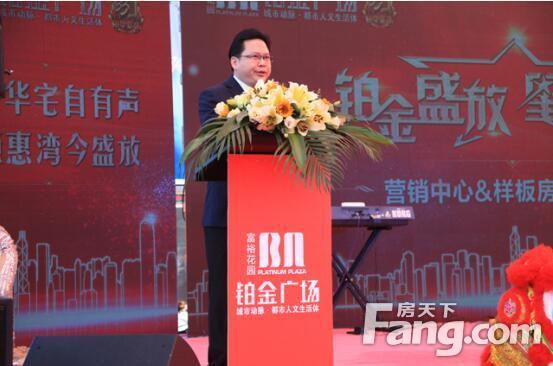 上午10點,在氣勢不凡的龍鼓舞表演之后,主持人宣布盛典正式開始。鉑金廣場開發商裕華集團副總經理劉軍先生致辭,對所有來自深惠的嘉賓朋友表達了熱烈的歡迎和誠摯的謝意,為惠灣再造一個值得珍藏的城央都芯地標。