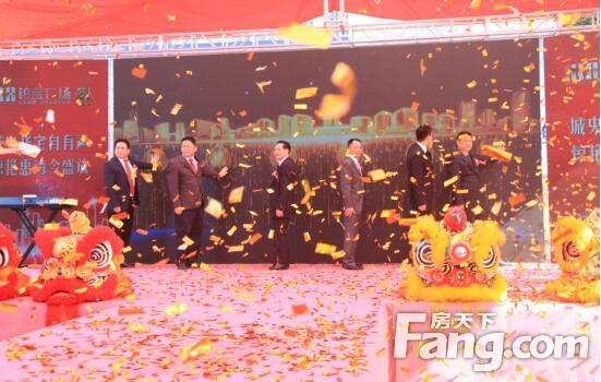 隨后,裕華集團董事長劉觀送先生攜手集團相關領導一起登臺,參與鉑金廣場啟動儀式,一起開啟鉑金時代的新篇章。現場彩煙禮炮齊放,舞獅隊入場,祝愿鉑金廣場開門大吉,劉穗先生、劉軍先生、劉錦源先生、彭家煒先生四位領導親手為醒獅點睛,慶祝鉑金廣場耀世啟航。