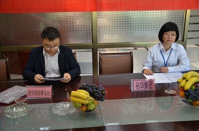 11月2日(ri),在(zai)區總工(gong)會(hui)(hui)(hui)、區司法(fa)局、淡水工(gong)會(hui)(hui)(hui)的(de)關懷(huai)和(he)共同見證下,裕華集(ji)團工(gong)會(hui)(hui)(hui)和(he)廣東德鄰律師(shi)事務(wu)所,在(zai)裕華集(ji)團八樓會(hui)(hui)(hui)議室簽訂了“法(fa)制副(fu)廠長(chang)”的(de)聘用協議。