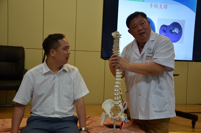 首先,陳教授針對(dui)現場辦(ban)公(gong)室職員多(duo)的特點,羅列出一些辦(ban)公(gong)室常見的手(shou)、腰脊等常見疼痛問題,通過圖片分析了問題的起因(yin),展示不正確的辦(ban)公(gong)坐姿(zi),及不規范辦(ban)公(gong)輔(fu)助工具的危害。當(dang)中穿插介(jie)紹了其(qi)曾(ceng)接觸過類似病例,讓大家更全面地了解情況。