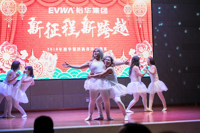 晚宴期間的節目也很精彩。有集團辦的民國風舞蹈,物業公司動感十足的舞蹈串燒,也有劉氏家族小伙伴帶來的歌舞串燒,深情獻唱《成都》,最轟動的是地產銷售部獻上極具部門活力朝氣的激情操,臺上的表演者和臺下的部門同事,全體一起舞動著青春和激情,以及代表著裕華敢于嘗試、勇于展現自我的企業公司選送節目《我的天鵝時代》,惡搞芭蕾舞《天鵝湖》中的一段經典舞蹈,臺下同事無不捧腹爆笑,指著表演者叫到:“啊,哈哈,那只肥鵝......”